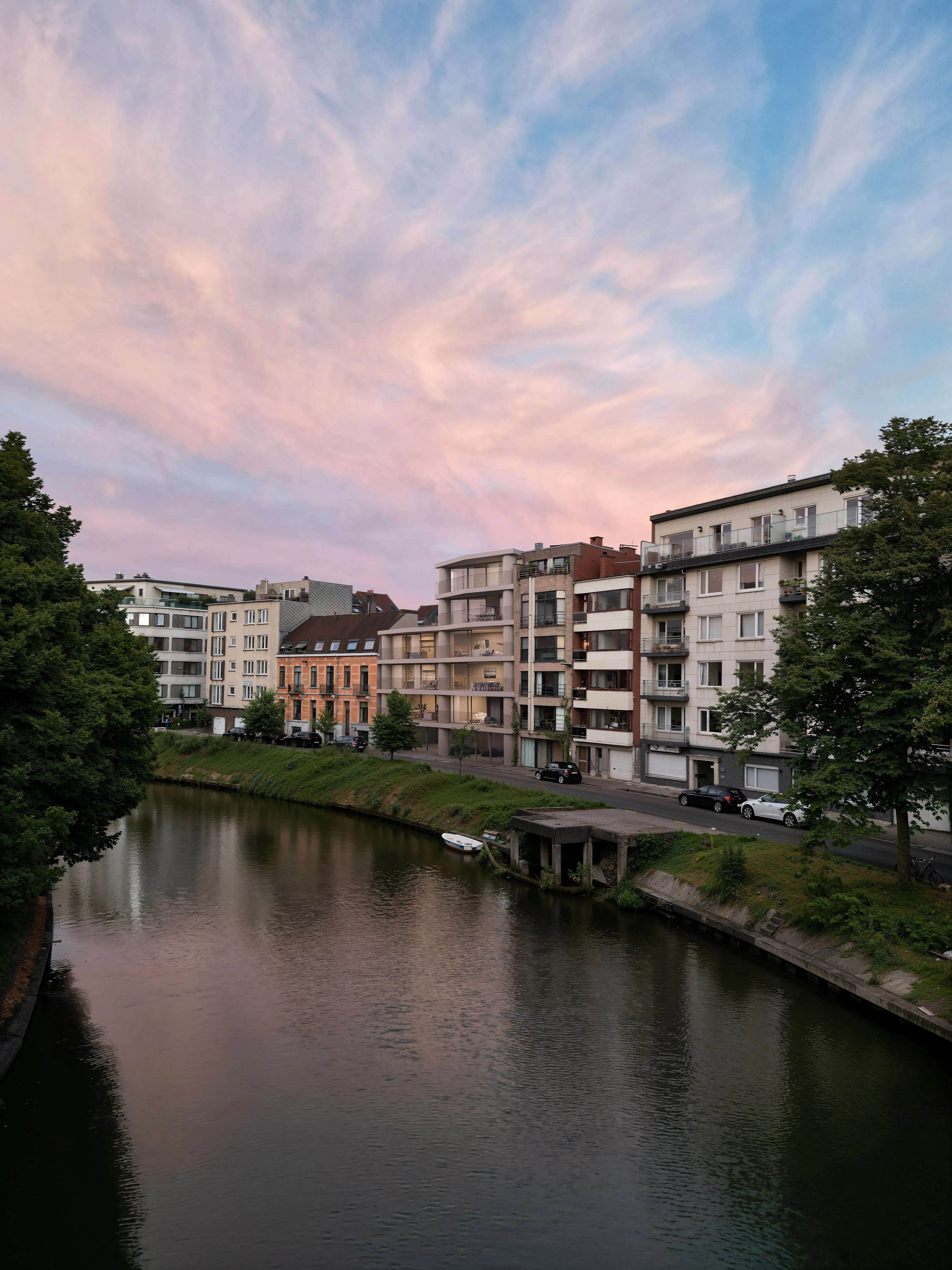 Gelegen langs de bocht van de Leie, kan elk appartement genieten van een prachtig zicht op de zonsopgang en zonsondergang.